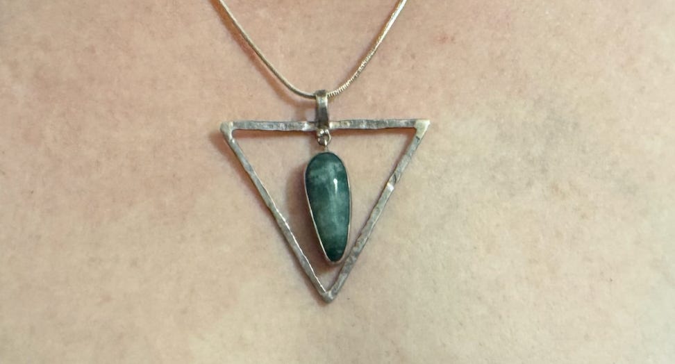 She told me about it over dinner. I could see it landed for her. Like a tuning fork had been struck somewhere deep and was still humming. She’d made a necklace while she was there. Not bought. Made. Sat down with a silversmith, pounded the metal, picked out the gem. The whole nine. It was her reminder, her totem. She’d reference the triangle in conversations. It clearly MEANT something to her.